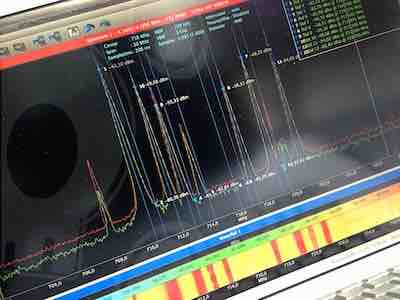 Spektrum-Analyse und RF-Monitoring der Signalfrequenzen, Interferenzen und etwaiger Störfrequenzen während der Produktion.